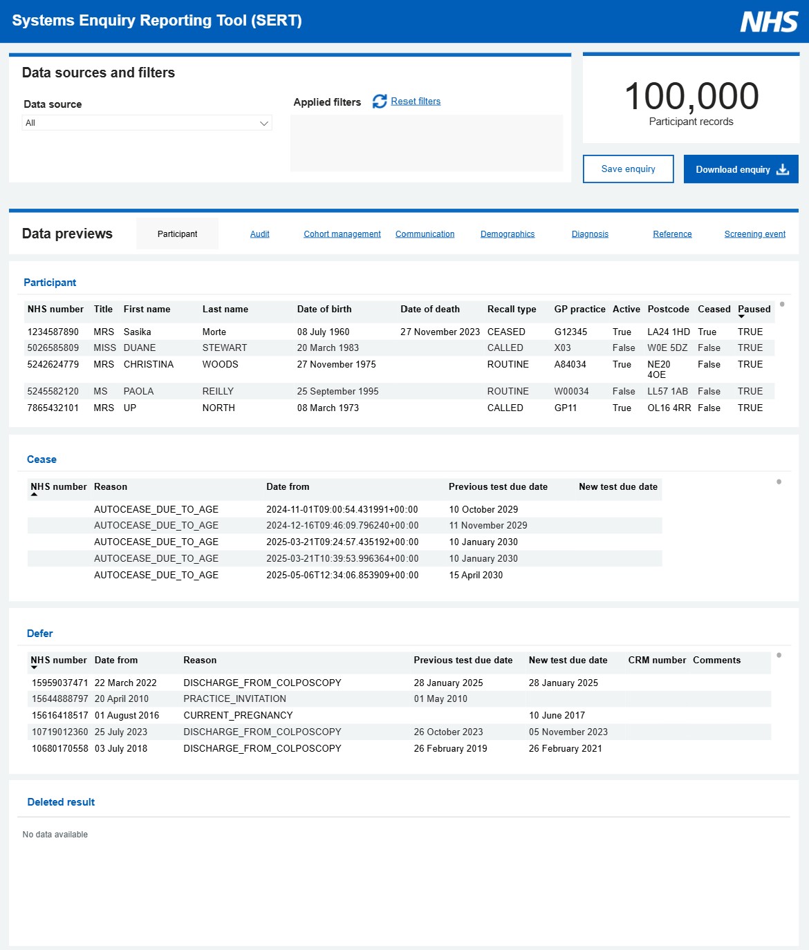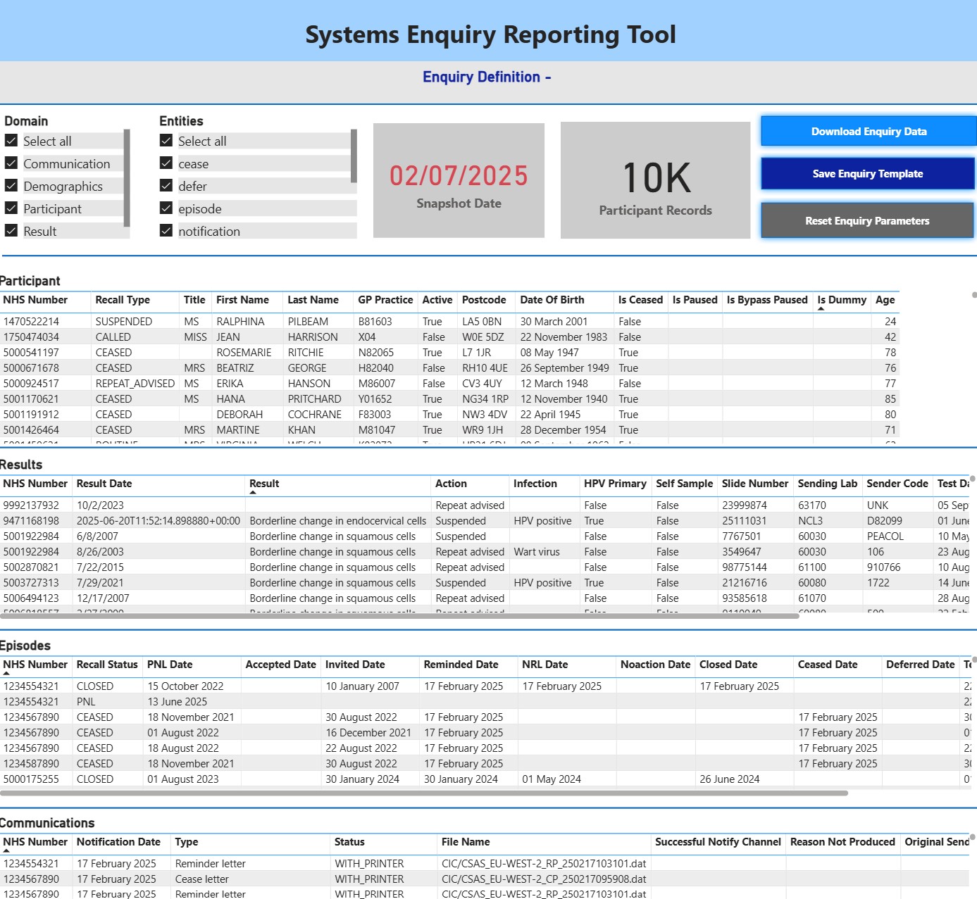 An enquiry tool that gives screening teams fast, intuitive access to millions of rows of data — surfacing insights while revealing platform constraints early.
